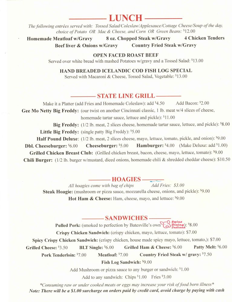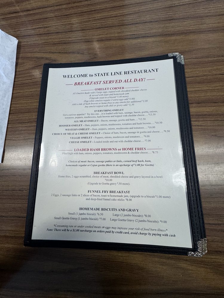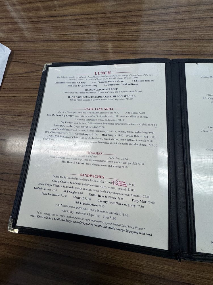 State Line Restaurant in Greendale, IN offers a diverse menu filled with New American cuisine. Customers praise the kind waitstaff, delicious food, and reasonable prices. Standout dishes include the biscuits and gravy, root beer floats, and the chef salad. The homestyle breakfast options, such as eggs over easy with goetta and hash browns, are also highly recommended. The restaurant is praised for its welcoming ambience and attentive service. With a focus on fresh ingredients and classic diner fare, State Line Restaurant is a gem in Greendale, Indiana that will make you feel like family. Whether you're in the mood for a hearty breakfast or a satisfying lunch, State Line Restaurant has something for everyone in a casual, welcoming setting.